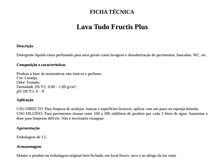 dose para limpezas difíceis. Não é necessário enxaguar.